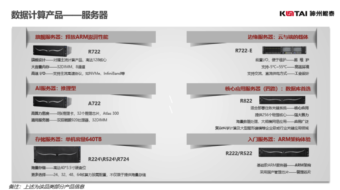 以鲲鹏算力和昇腾AI技术为底座,神州推出了R系列核心应用服务器、边缘服务器以及A系列人工智能服务器,D系列PC等多系列智能计算产品,为数字化打造坚实底座。神州作为首批华为鲲鹏展翅和昇腾万里生态合作伙伴,持续与整个产业生态共同努力,为众多行业客户提供基于国产软硬件的全栈式数字化转型解决方案,覆盖金融、运营商、互联网、能源、政企、科教医疗等领域,用实际行动,助推“数字中国”建设。