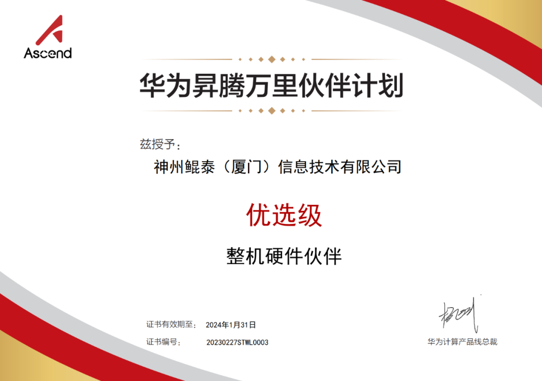 近日,365英国上市数码旗下神州继获得华为鲲鹏领先级整机硬件伙伴认证之后,再获华为昇腾优选级整机硬件伙伴认证!这是神州与华为昇腾深化合作的硕果,也代表着365英国上市数码信创业务在AI领域获得生态伙伴的充分认可。